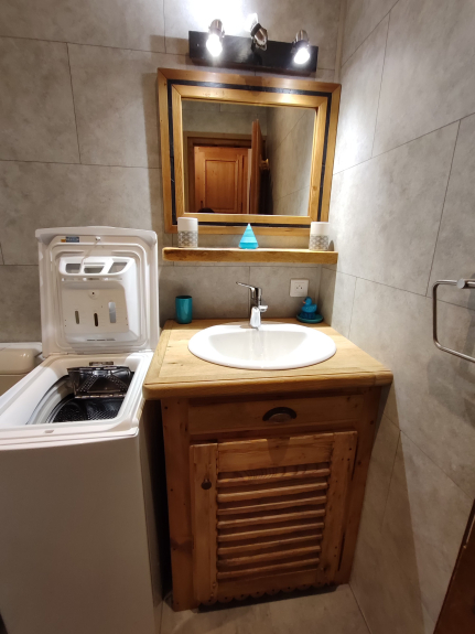 EN LA PLANTA: hay 2 dormitorios comunicados, 1 dormitorio con 1 cama doble + 1 cama de bebé y 1 dormitorio con 2 literas + (1 cama individual + 1 cama extraíble) = 1 cama doble. una tabla de planchar, un tendedero y una aspiradora.