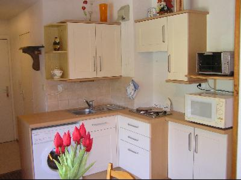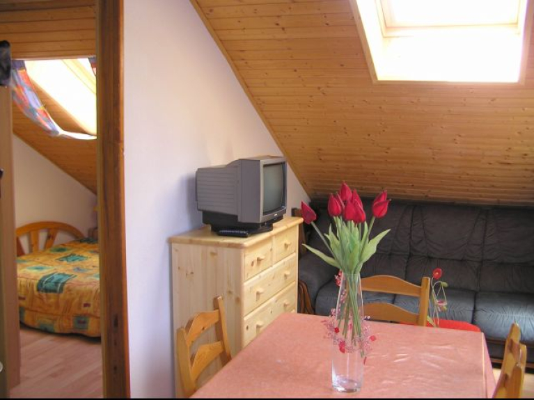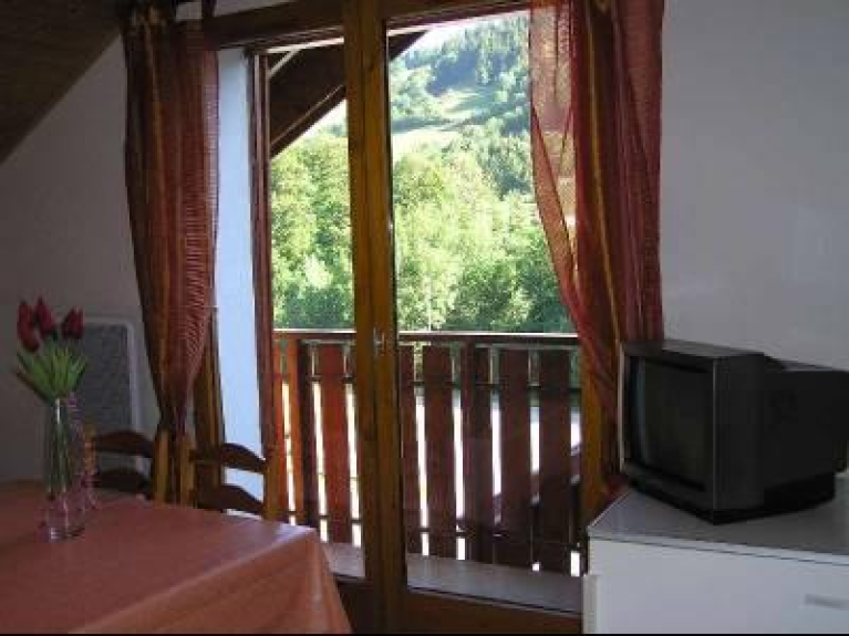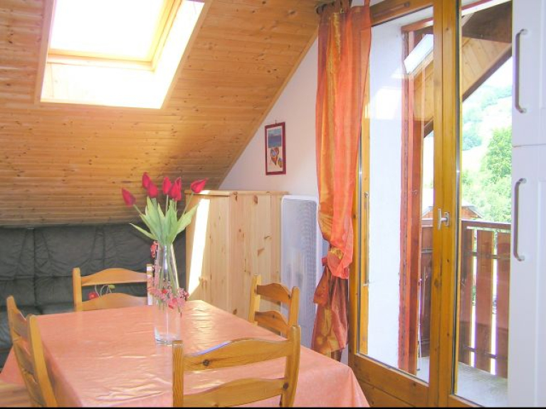 Está situado a pie de pistas. La zona de cocina cuenta con placa de cocina, nevera, microondas, mini horno, cafetera, lavadora y televisión. El dormitorio tiene una cama doble y una alcoba con 2 literas.