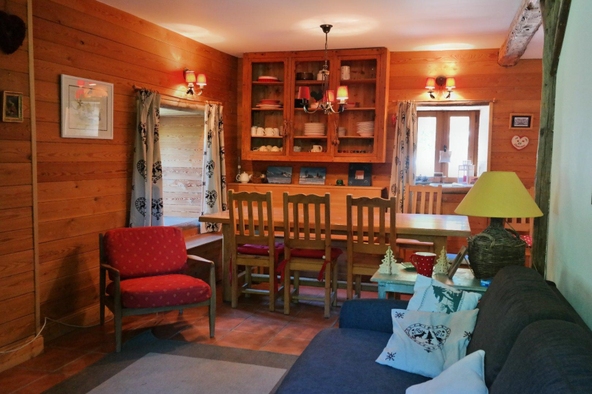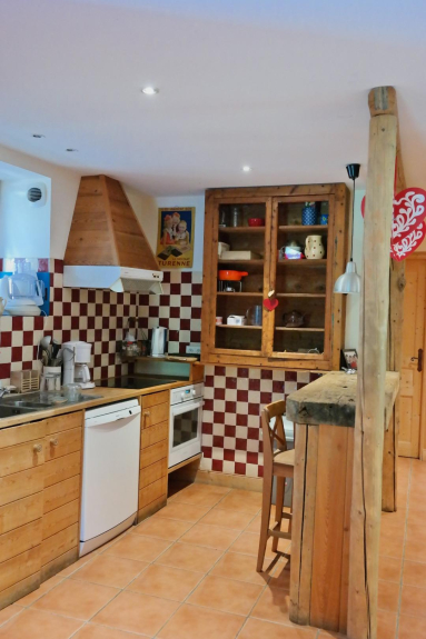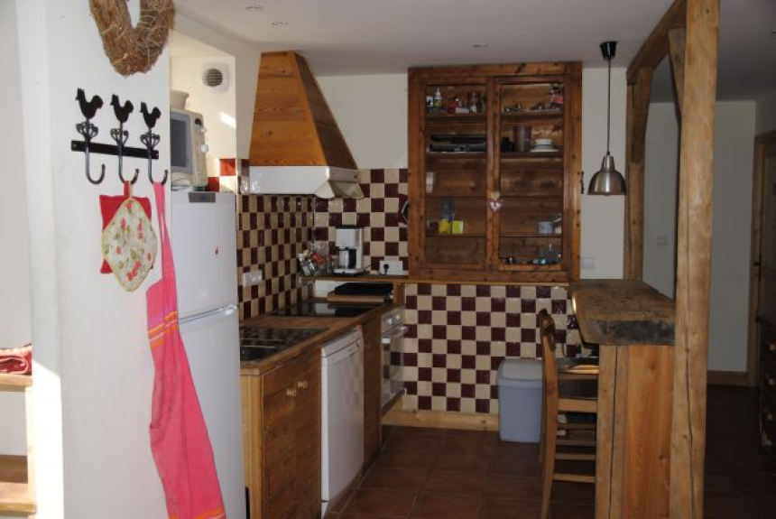 Piso en la planta baja de un chalet-granja de Maurienne (resto. 2004), ideal para 8 a 10 personas, 1300m, 3 habitaciones, 1 baño, 2 duchas, 2 aseos. Amplio salón con chimenea. Madera, totalmente equipada. Calefacción eléctrica geotérmica.