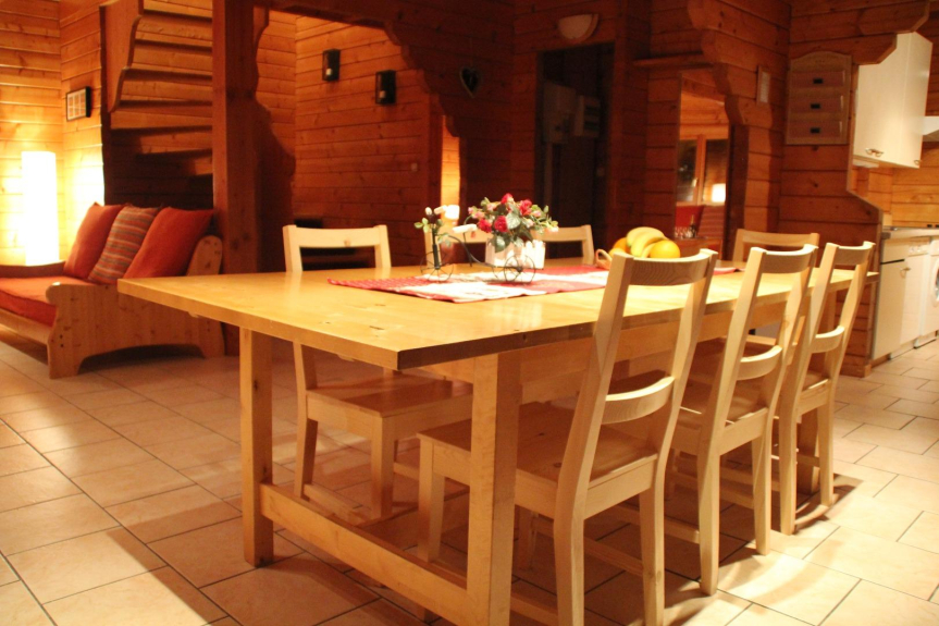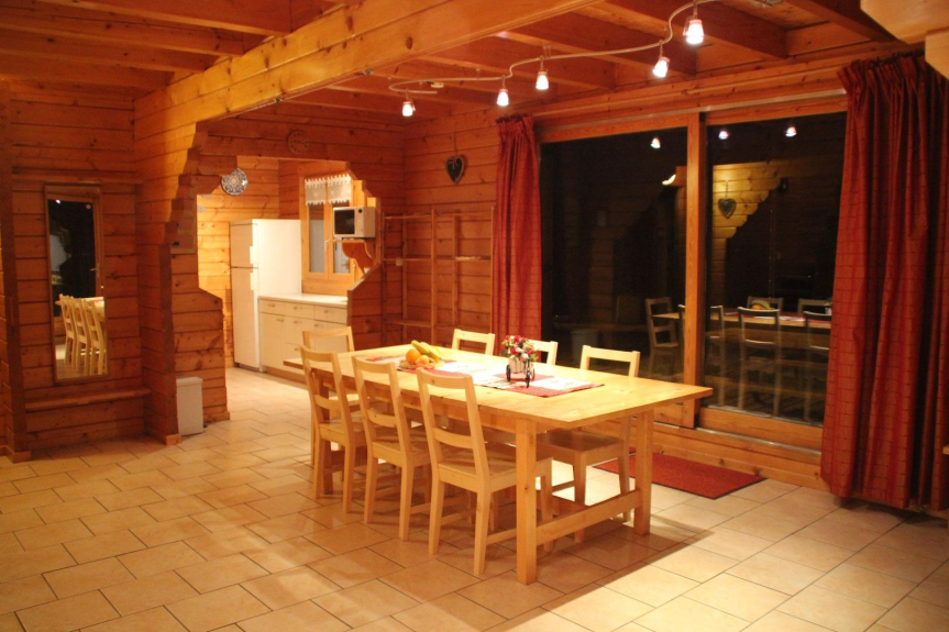 El alojamiento : Chalet individual de 140 m² a los pies de las pistas de la zona de esquí de Valmorel / Saint Francois Longchamp y la estación de Doucy que puede acomodar hasta 15 personas.Planta baja : Amplia sala de estar / recepción de 55 m², incluyendo una cocina americana abierta a la sala de estar.1 En la primera planta: 2 dormitorios con una cama doble1 dormitorio con dos literas1 dormitorio con dos camas individuales1 dormitorio con una litera1 sofá cama (sala de estar)Así que 14 personas en una habitación para un total de 15 camas.Dos cuartos de ducha, y dos aseos separados.Cocina totalmente equipada: lavavajillas, horno, placa eléctrica, microondas, nevera, congelador, lavadora, cafetera, 2 máquinas de raclette, 2 máquinas de fondue.Televisión y reproductor de DVD.Amplia terraza de 30 m² con una vista impresionante de las montañas (orientación SUR - sol de la mañana a la noche).Calefacción por suelo radiante, totalmente automática (+ calefactores individuales en las habitaciones)Dos grandes mesas de comedor están disponibles (para acomodar a 15 personas juntas y fácilmente)(Sólo en invierno) Una sala de esquí separada le permitirá guardar sus esquís en invierno, así como su comida (bebidas, frutas y verduras, etc.¡La situación y la estación : Este chalet está situado a pie de pistas en las alturas de la estación de Doucy (estación familiar del dominio esquiable de Valmorel / Saint François Longchamp) a 1400 metros sobre el nivel del mar y ofrece un acceso directo a las pistas.Tranquilo y bien expuesto, el chalet está situado en el borde del bosque, ofreciendo una vista sin obstáculos de la montaña, para un ambiente muy exótico! El telesilla pasa por delante del chalet y la pista por detrás (30 metros).La estación está a 10 minutos a pie (camino peatonal), 2 minutos esquiando y 2 minutos en coche.En esta estación, encontrará todos los bienes y servicios para su estancia: alquiler de material de esquí (skiset & intersport), supermercado: Sherpa, 3 restaurantes saboyanos, Oficina de Turismo, ESF (Escuela de Esquí Francesa), compra de forfaits así como una guardería.Condiciones, precauciones y pago:Para evitar los tradicionales atascos de los sábados, los alquileres son de domingo a domingoEntrada: 4pm - Salida: 10amEl chalet es completamente para no fumadores.No EVG - EVFLEl "plus" de los chalets Lesne:Sólo en temporada (julio-agosto y enero-febrero-marzo-abril): - Entrega de pan y croissants en el chalet cada mañana - servicio gratuito- Entrega y facturación del alquiler de esquís en el chalet el día de su llegada - servicio gratuito- Sauna exterior para 8 personas (alquiler semanal adicional)Transporte y acceso :Por carretera: Entrar en Chambery y luego en Alvertville por la A43, seguir la autopista RN 90 en dirección a Moutiers, tomar la salida 37 hacia La lechere, Saint Oyen, Doucy-Station. En la estación de Doucy, siga "piscine d'été", "lotissement chantemerle" llegará a un aparcamiento bajo el telesilla: ha llegado.gare SNCF : Gare de Moutiers - Brides-les-bains. Actividades de verano e invierno : En la oficina de turismo de la estación de Doucy, encontrará numerosas actividades propuestas por la estación (a 10 minutos del chalet): ping pong, parque infantil, campos de fútbol y baloncesto (estadio municipal), voleibol de playa, piscina, tiro con arco, pistas de tenis, senderismo, bicicleta de montaña, parapente, escalada, ala delta, etc... A 25 minutos del chalet, las actividades son : Rafting, barranquismo, rafting en canoa, hidrospeed, airboat, stand-up paddle, vía ferrata, etc...En invierno: esquí alpino, esquí de fondo, raquetas de nieve, guardería infantil, tobogán, etc...El balneario de La Léchère se encuentra a 15 minutos en coche: posibilidades de Spa, Sauna y Aqualudic