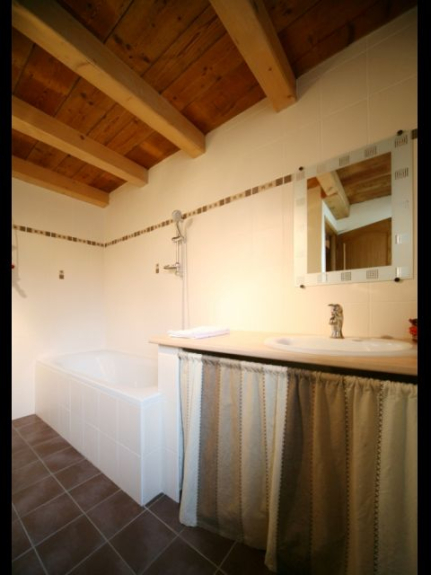 3 dormitorios dobles con camas de 180 cm, 2 dormitorios triples 3 cuartos de ducha + 1 baño con bañera + 2 aseos separados. Equipamiento para bebés