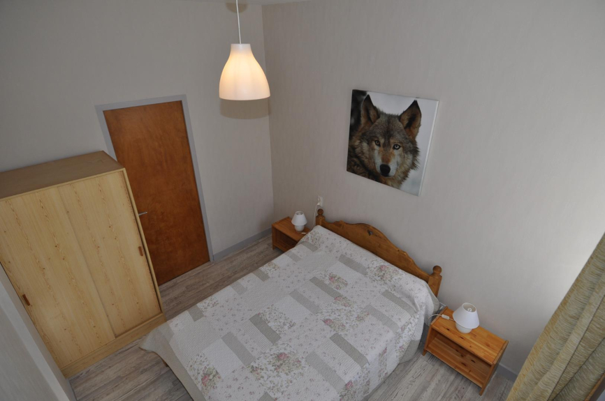 2 dormitorios, uno con cama de matrimonio y el otro con una cama de matrimonio y una litera.