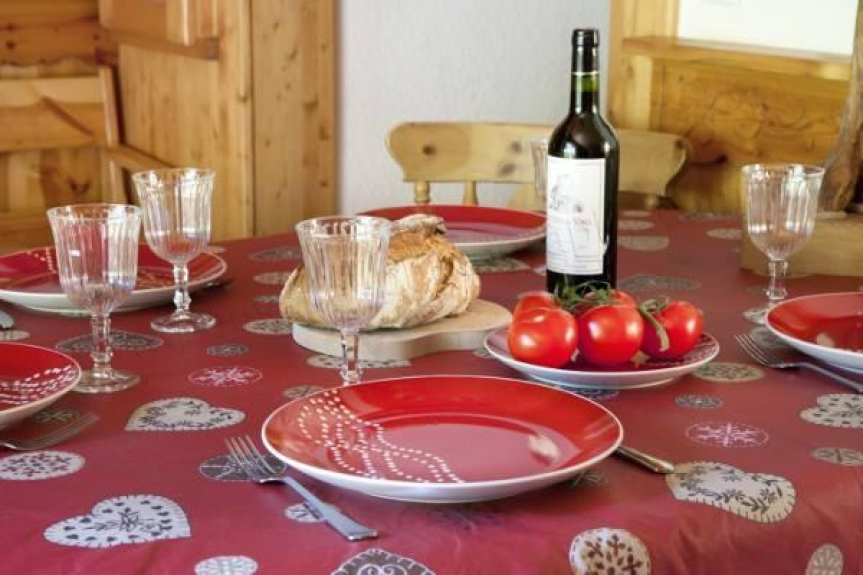 - 1 salón con decoración saboyana con su pantalla plana (TNT) y su DVD, 1 gran terraza con una mesa saboyana.