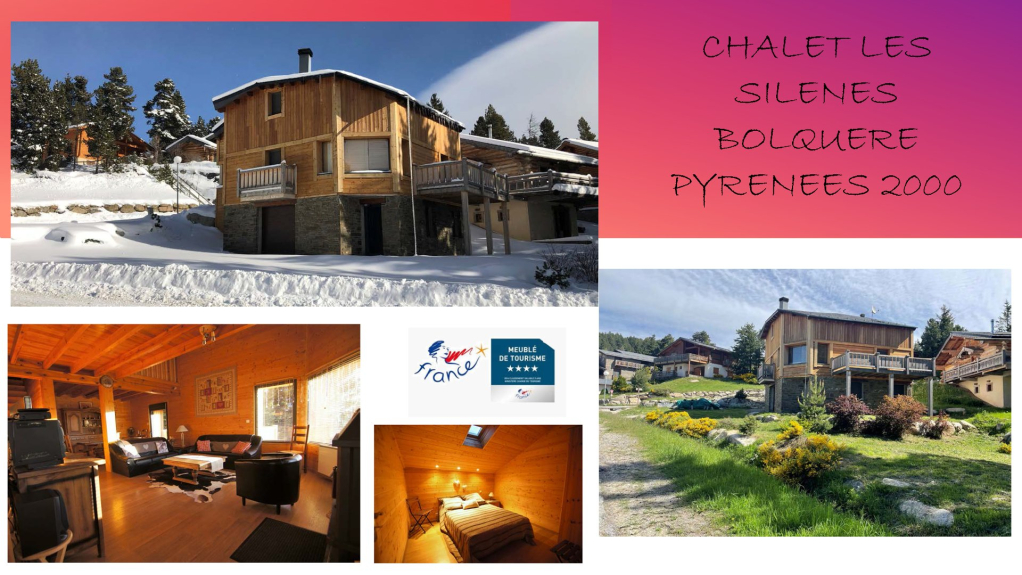 Alquile su chalet de 120 M2 para 10 personas en la estación de los Pirineos 2000 a pie de las pistas de esquí de fondo, a 600 metros de las pistas de esquí alpino y de los comercios y al borde de la terminal de ocio (tenis, centro deportivo) en el corazón del Parque Natural Regional de los Pirineos Catalanes. Un autobús gratuito durante la temporada se detiene a los pies del chalet. A pocos minutos de la estación de Font Romeu, Pyrénées 2000 es una ventana al Capcir, a España y a Andorra.