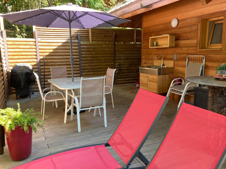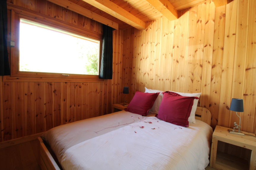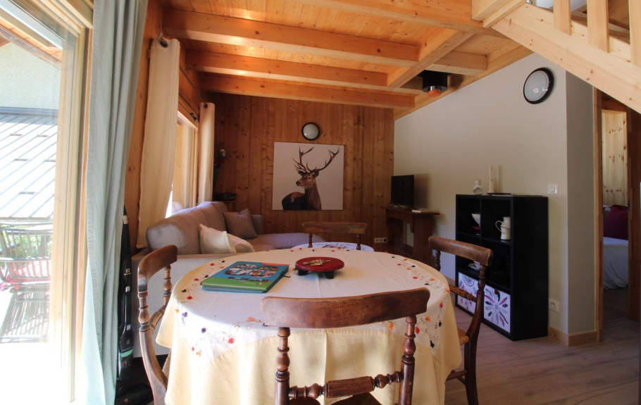 Pequeño chalet independiente muy bonito, espacioso y confortable con servicios nuevos y de calidad en un chalet de madera contemporáneo. Zona tranquila y arbolada, magnífica vista sobre el bosque y la montaña. A sólo 1,5 km de la estación de Prorel y a 2 km de la estación de Chantemerle (Serre Chevalier).