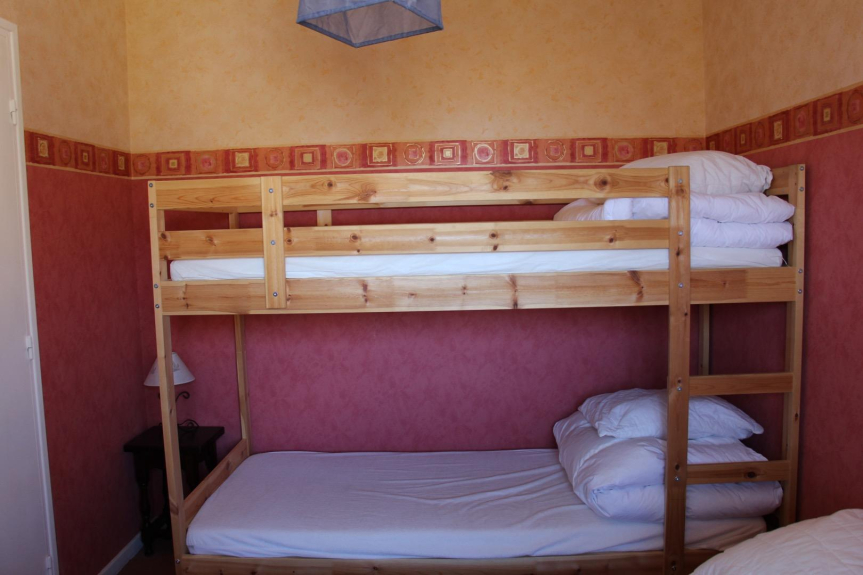 Sala de estar con sofá cama, cocina abierta totalmente equipada. Dormitorio independiente con cama de matrimonio + literas, gran armario de almacenamiento.