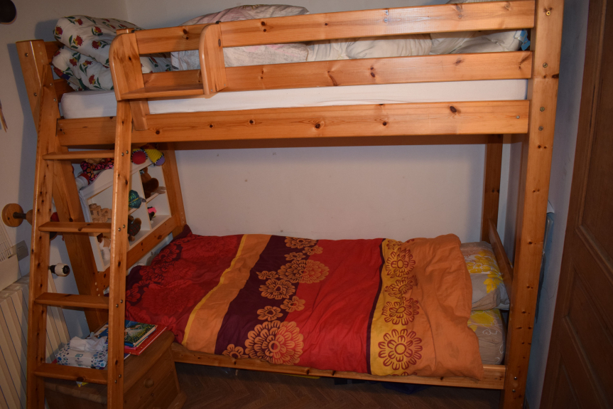 El piso (el único que tenemos en alquiler) está en la planta baja y consta de una gran cocina independiente, un aseo separado, un cuarto de baño con ducha italiana y dos grandes habitaciones, un dormitorio y un salón-dormitorio.