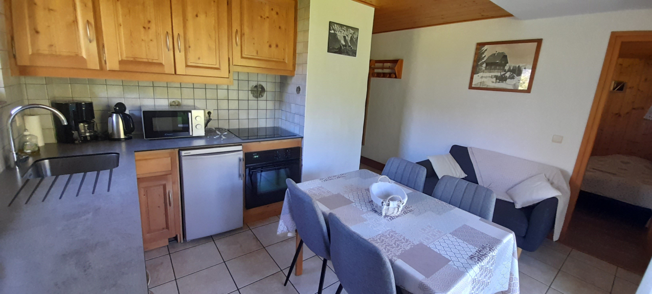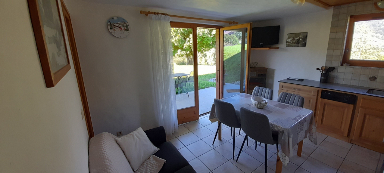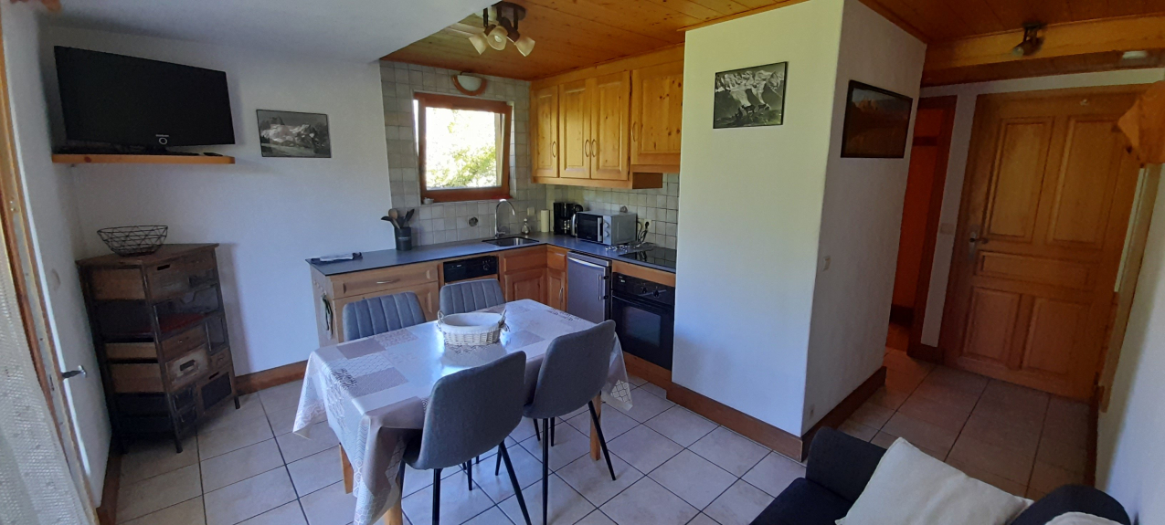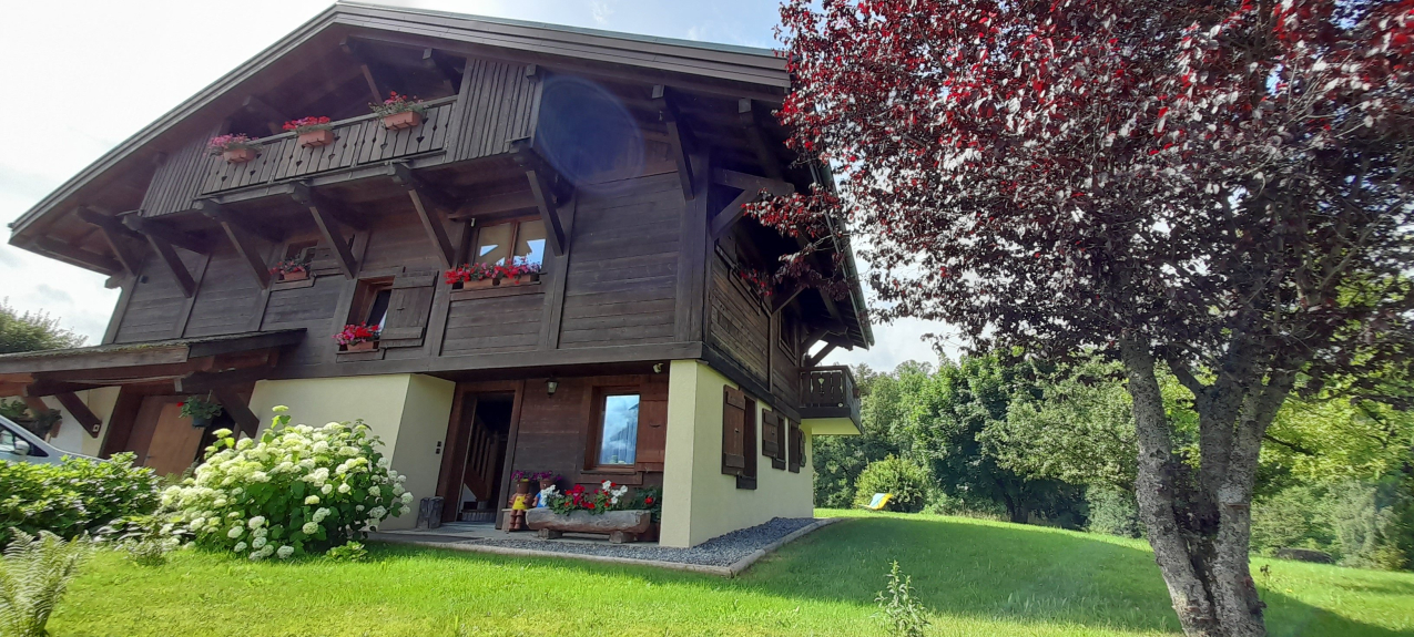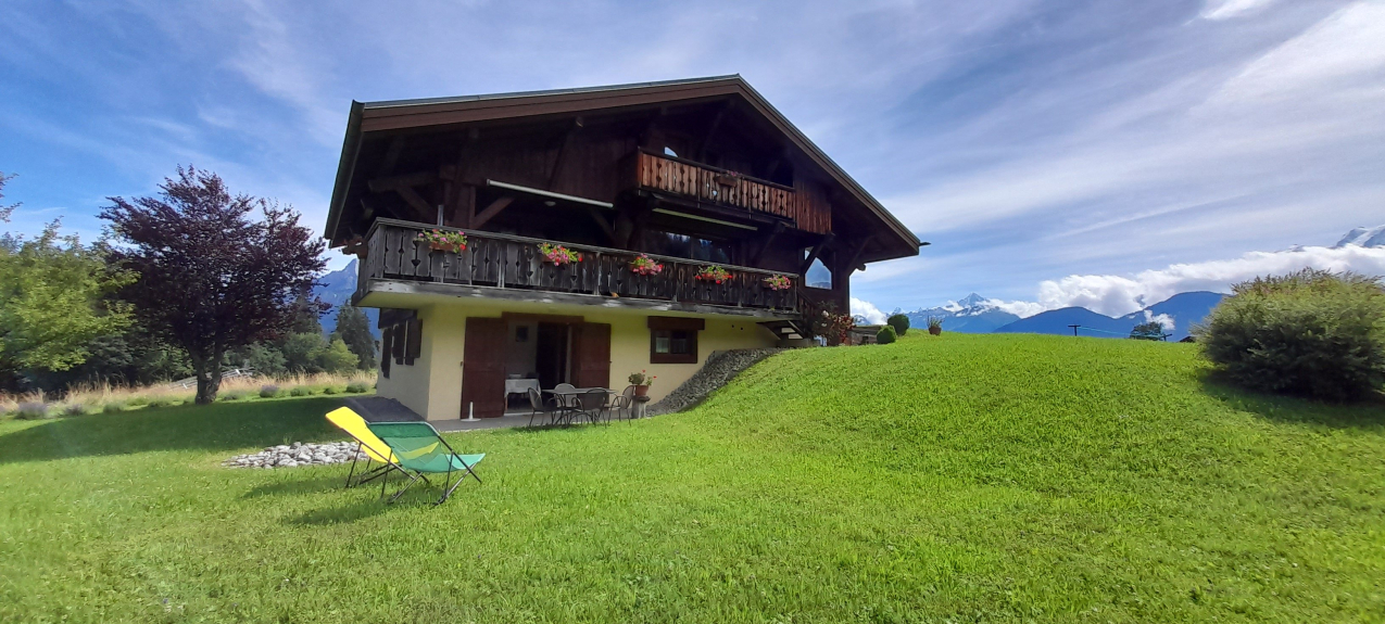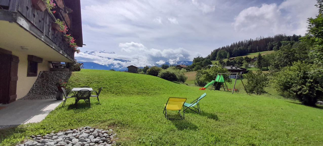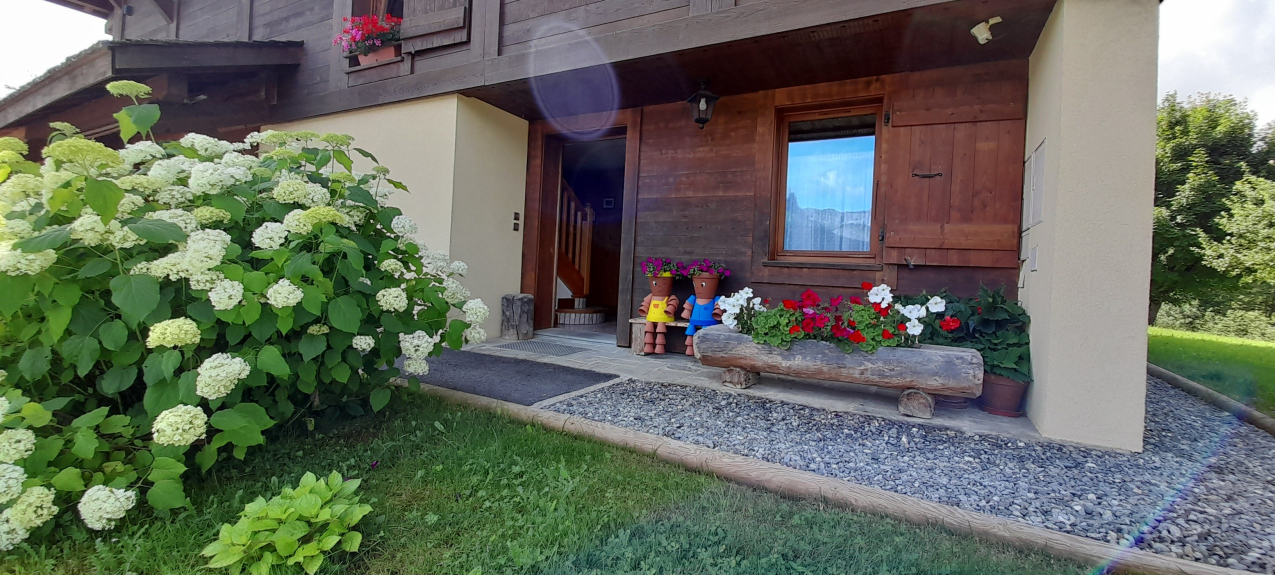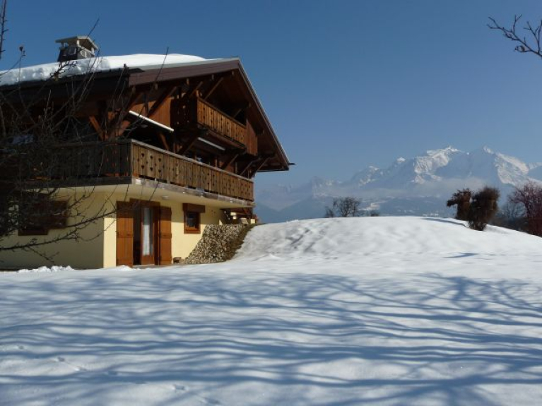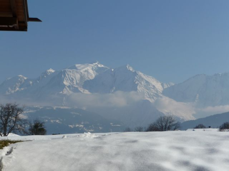 Bonito piso en la planta baja de un chalet. Muy buena exposición al sur y al oeste, vista del Monte Blanco desde la terraza, buen sol y gran terreno a disposición de los huéspedes, con posibilidad de hacer comidas en el jardín, muebles de jardín, tumbonas. Invierno: Por favor, traiga su propio equipo para acceder al chalet.