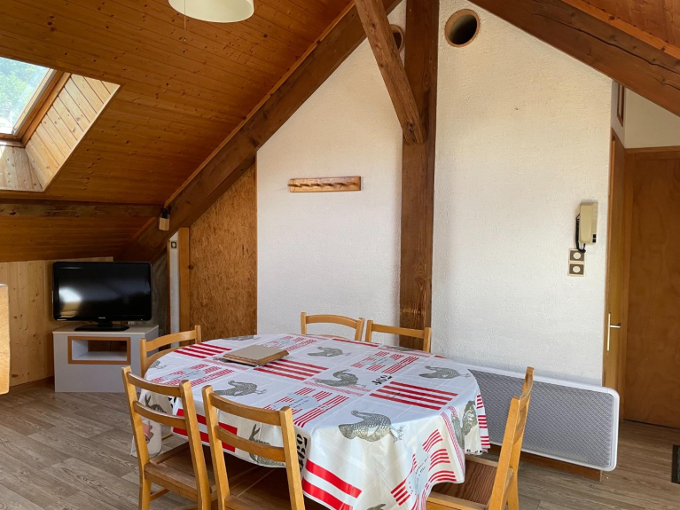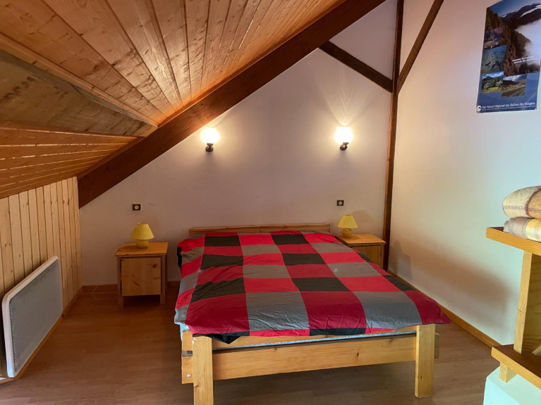Cerca de La Bresse-Gérardmer. Altitud 650 m. Alojamiento amueblado con todas las comodidades, 50 m², 5 personas, cocina equipada, salón, dormitorio, amplio baño, chimenea, TV, lavadora, lavavajillas, cama y silla de bebé, aparcamiento, muebles de jardín, barbacoa, sala de juegos y ejercicios, tobogán, columpio, bosque, arroyo, cerca del lago, piscina y pistas de esquí de fondo y alpino, préstamo de esquís de fondo y raquetas de nieve.