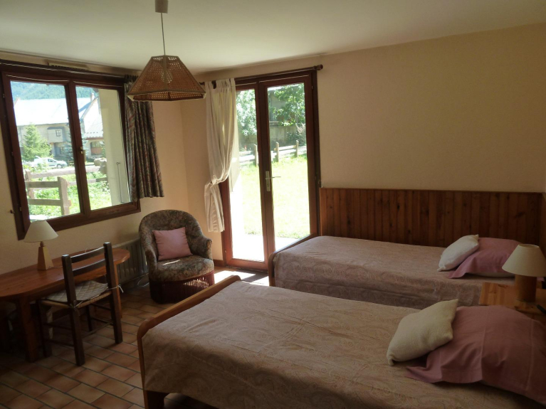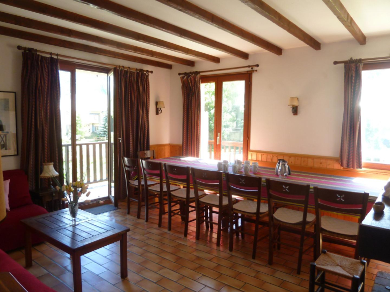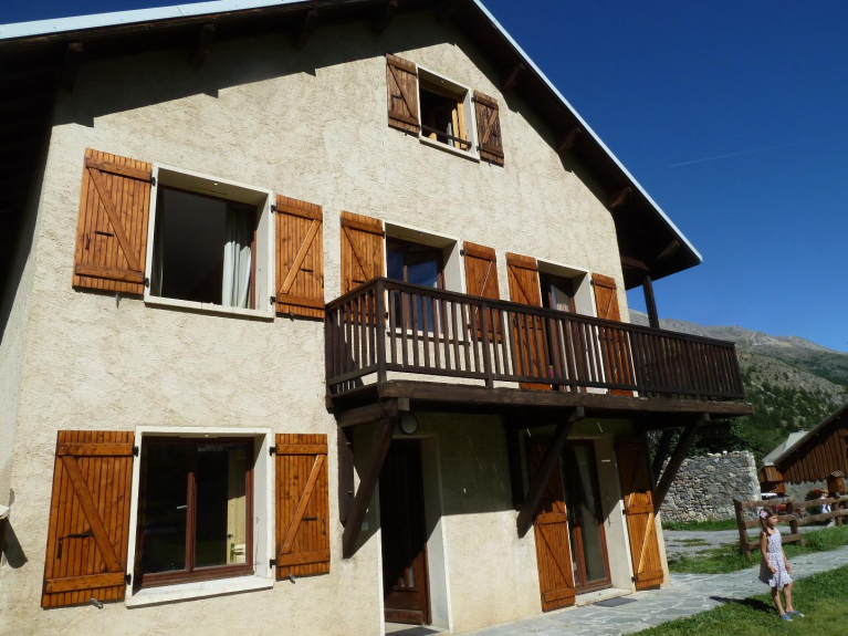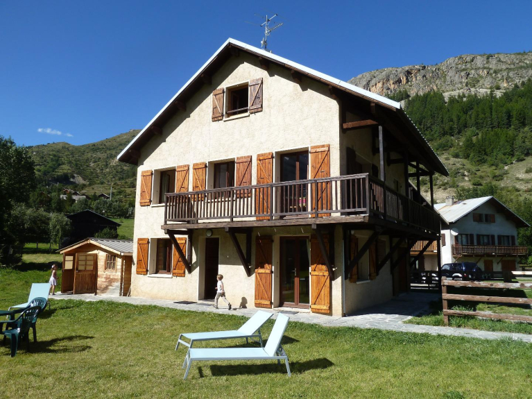"Chalet grande, muy cómodo y muy tranquilo, situado en Monêtier-les-bains (Serre-Chevalier, altitud 1500 m), un encantador y auténtico pueblo de montaña, en el borde del Parque Nacional de Ecrins, con una hermosa vista del glaciar Monêtier, orientado al sur, en un césped de 1000 m2, muy tranquilo, muy cerca de las tiendas, a 5 minutos a pie de las pistas de esquí, y a 3 minutos a pie de los baños termales, tenis.