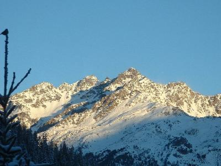 Salida y regreso al chalet con los esquís puestos, vista de la estación y del macizo de la Vanoise. 13 camas posibles. Cama paraguas BB disponible.
