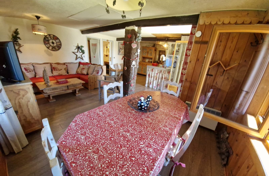 Nuestro chalet está muy bien situado, a 300 metros del centro y de sus comercios, a 500 metros de los remontes, su mayor ventaja es la excepcional vista panorámica y el sol desde el amanecer hasta el atardecer. La zona es tranquila a la vez que está cerca del centro. Vivimos en el primer piso del chalet todo el año y alquilamos la parte inferior de nuestro chalet desde hace más de 17 años. Le daré la bienvenida a su llegada. Como señal de nuestro buen producto, los inquilinos vuelven con nosotros y para algunos nos hemos convertido en amigos. También podemos alquilar por fines de semana, póngase en contacto con nosotros para conocer los precios.