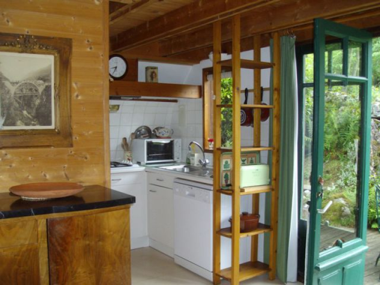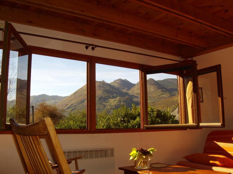 El chalet, casa rural con encanto y casa de nieve, está clasificado 3 épis por la Gîtes de France. Está en plena naturaleza, en un sitio tranquilo y preservado a 850m de altitud, las montañas del Val d'Azun por marco, cerca del pequeño pueblo pastoril de Aucun, entrada del Parque Nacional de los Pirineos.