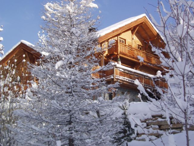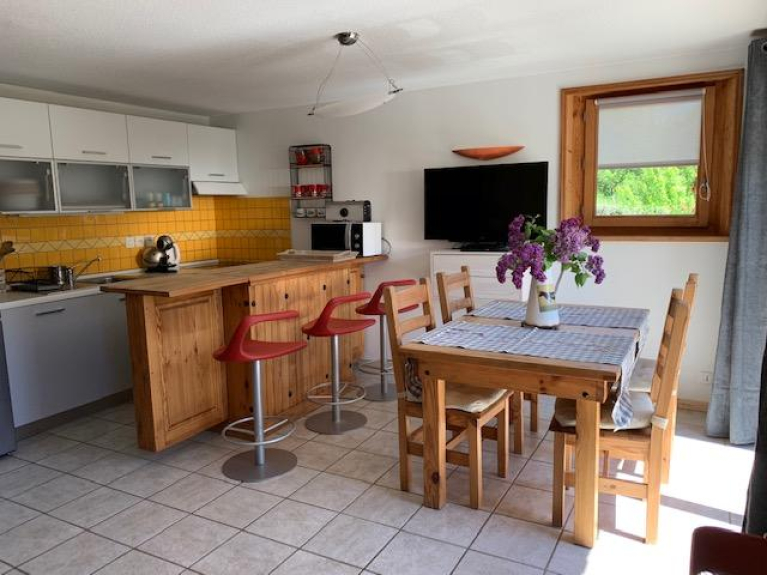 Piso en la planta baja de un magnífico chalet de BAYROU, realizado íntegramente en alerce, combinando la madera tradicional de montaña y la piedra. Decoración de montaña muy actual, confort moderno, vista panorámica de la zona de Serre Chevalier, tranquilidad garantizada...