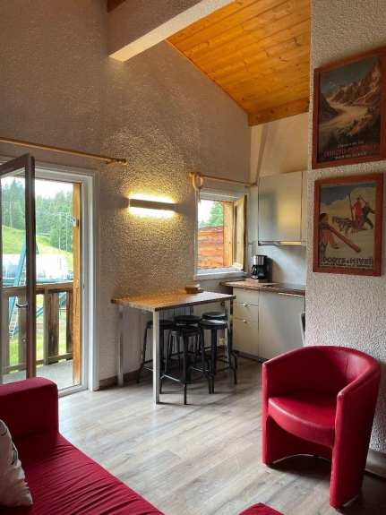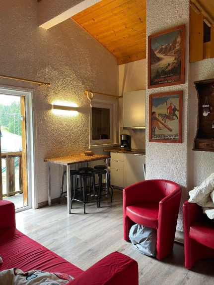 Encantador apartamento para 5 ó 6 personas en el último piso de un gran chalet, en el corazón de una residencia de cinco hectáreas situada al pie de las pistas del dominio esquiable de Saint-Gervais - Megève (445 km de pistas y 113 remontes). De 800 a 1050 euros por semana en invierno, según el período. 2 habitaciones y un altillo.