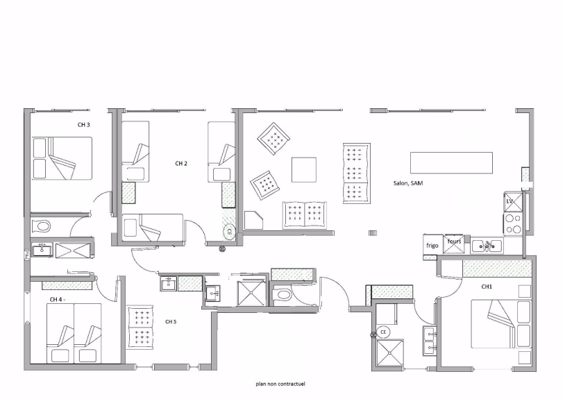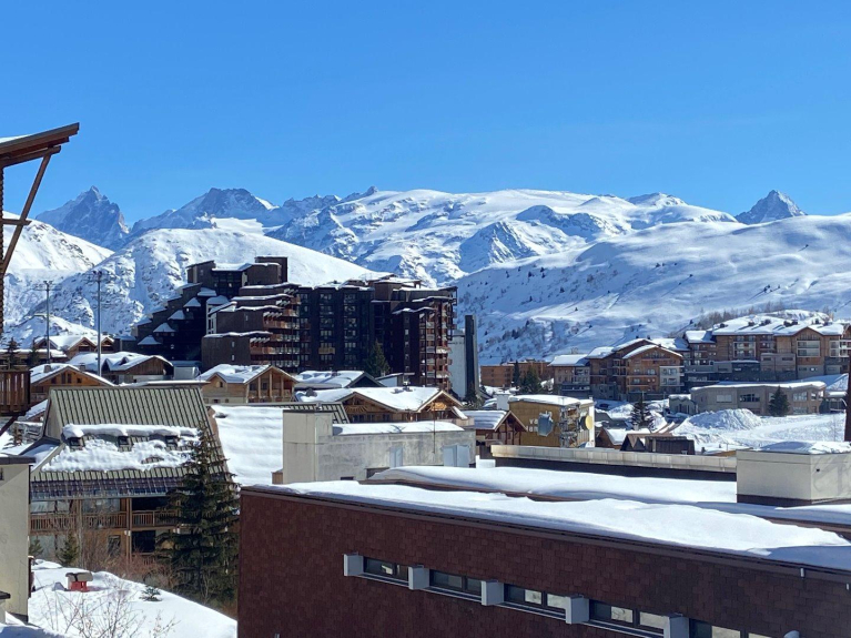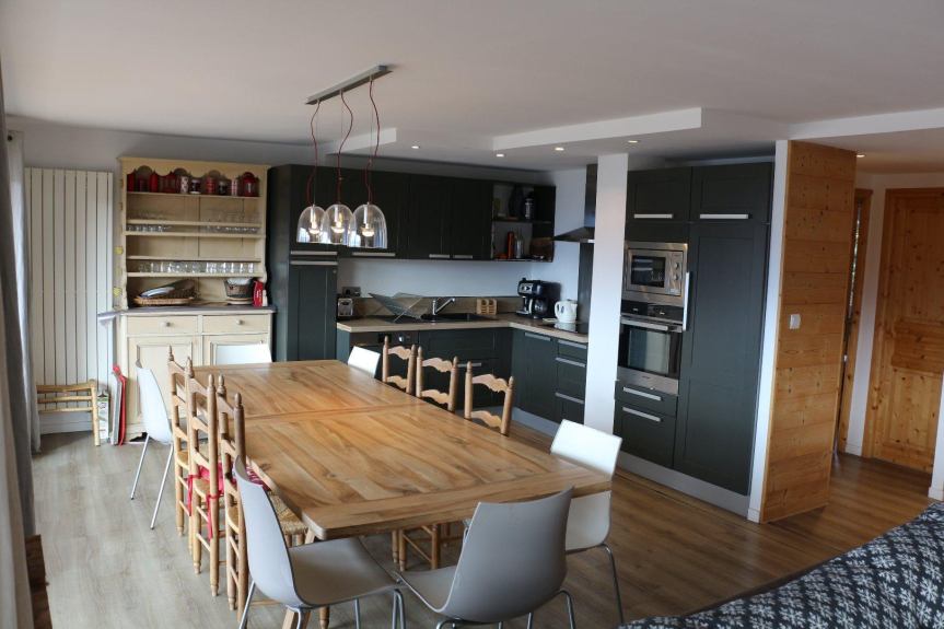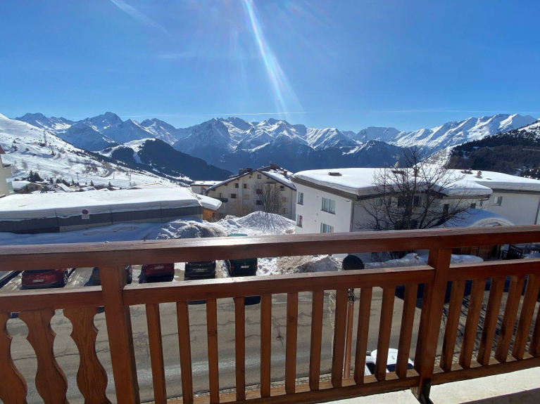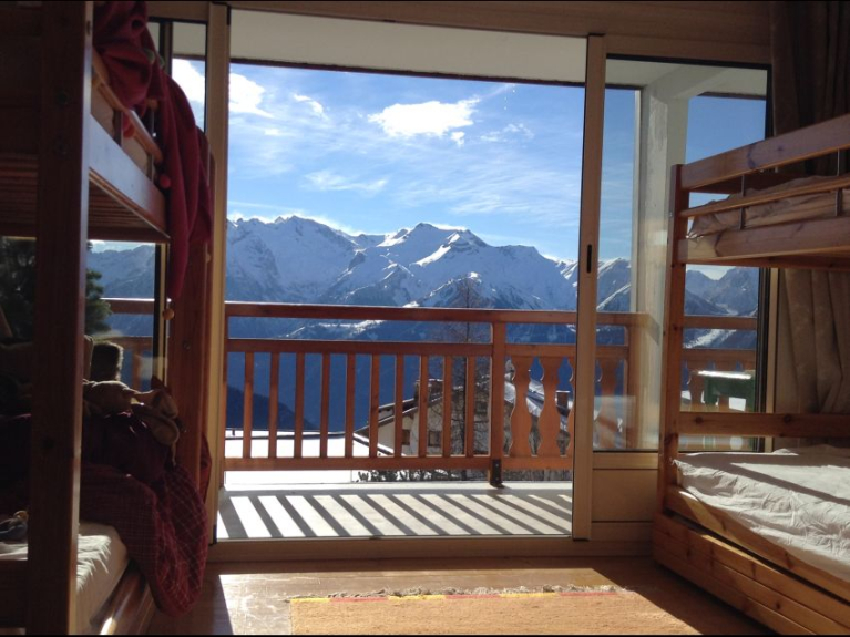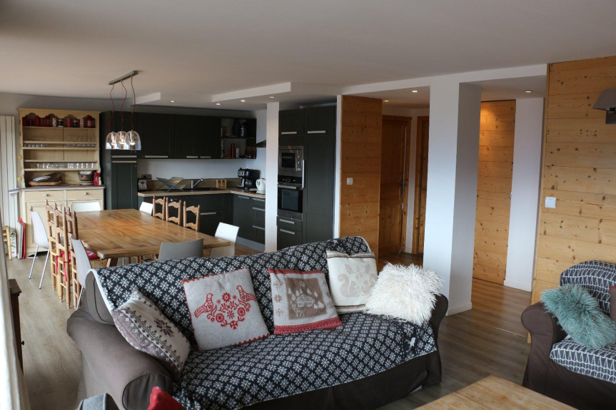 Piso del propietario calificado con 4 estrellas. Situado en el centro de la estación, a pie de pistas (retorno ski in ski out), a 5 minutos de todos los comercios, de la piscina y de la pista de hielo, con aparcamiento, el piso ha sido completamente renovado y dispone de todas las comodidades (cocina equipada, lavadora, TV, secador de zapatos, guardaesquís, etc... ). El piso ocupa toda la planta. Tiene una magnífica vista orientada al sur con grandes ventanales que se abren a una gran terraza con muebles de jardín. El interior está decorado en estilo montañés con revestimiento de madera y una estufa de leña en el salón. El piso consta de un salón-comedor de unos 37m² y 5 dormitorios: 3 dormitorios con camas dobles, 1 dormitorio con 2 camas individuales y 1 dormitorio con 6 camas (3x2 literas). Tres cuartos de ducha y dos aseos separados. Muchos armarios y espacio de almacenamiento.