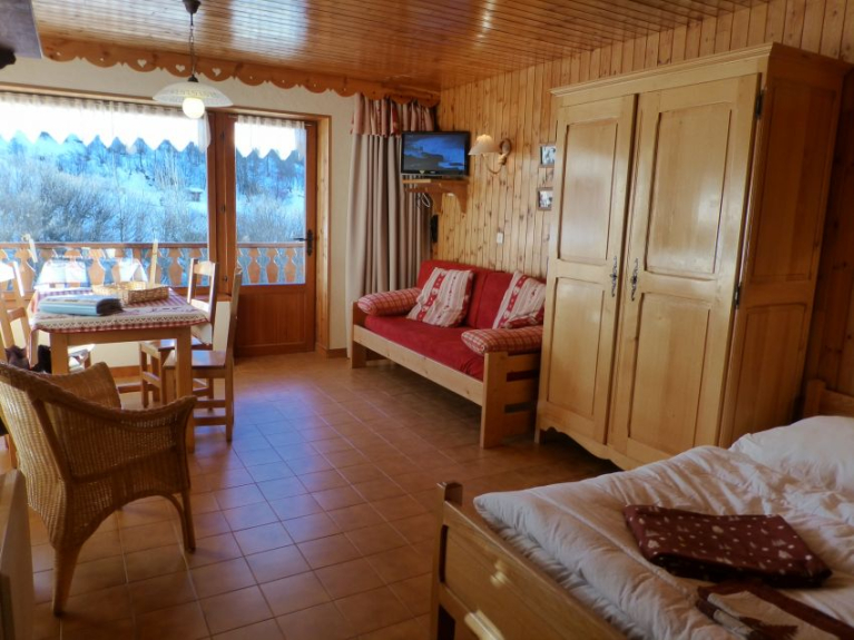 Al pie de las pistas, estudio en el primer piso de un chalet tradicional, orientado al sur con mirador y balcón, vista sin obstáculos de las pistas y la montaña, gran comodidad, clasificación prefectural de 10/10/17: ****