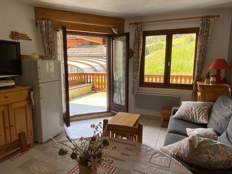 Centro del pueblo y oficina de turismo a 750m, teleférico a 150m, zona de ocio a 350m, 2 televisores (1 en el dormitorio), zona de cocina, terraza cerrada de 20m cuadrados.