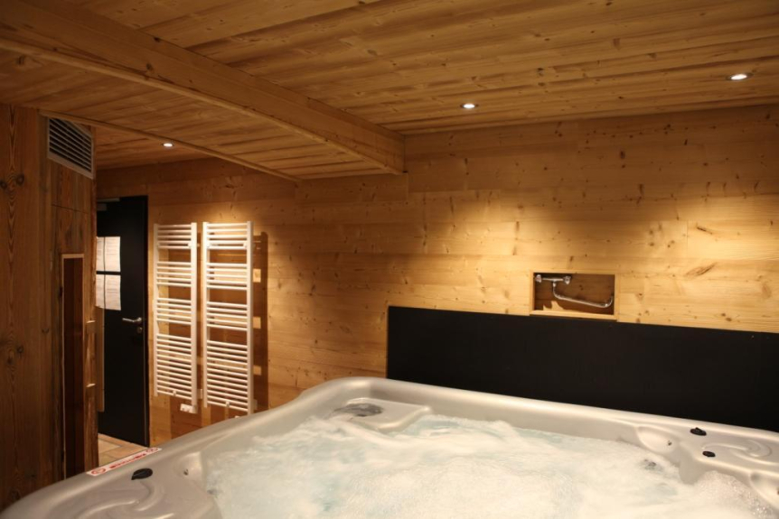 puedes disfrutar de la sauna y el jacuzzi sin tener que salir del chalet dentro de los límites del horario (8.30-8.30)