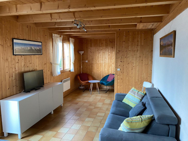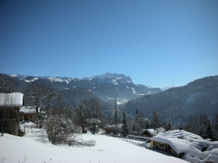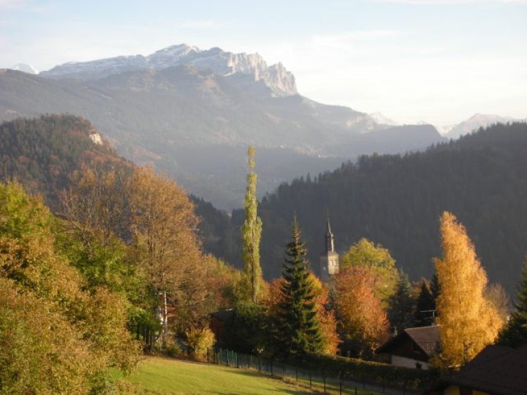 En el pequeño pueblo de Saint Sigismond, con una impresionante vista del valle del Arve y las montañas circundantes. Estaciones de esquí alpino cercanas: Les Carroz-d'Arâches (8 km), Morillon (12 km). Centro de esquí nórdico de Agy a 2,7 km.