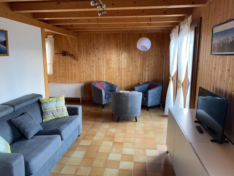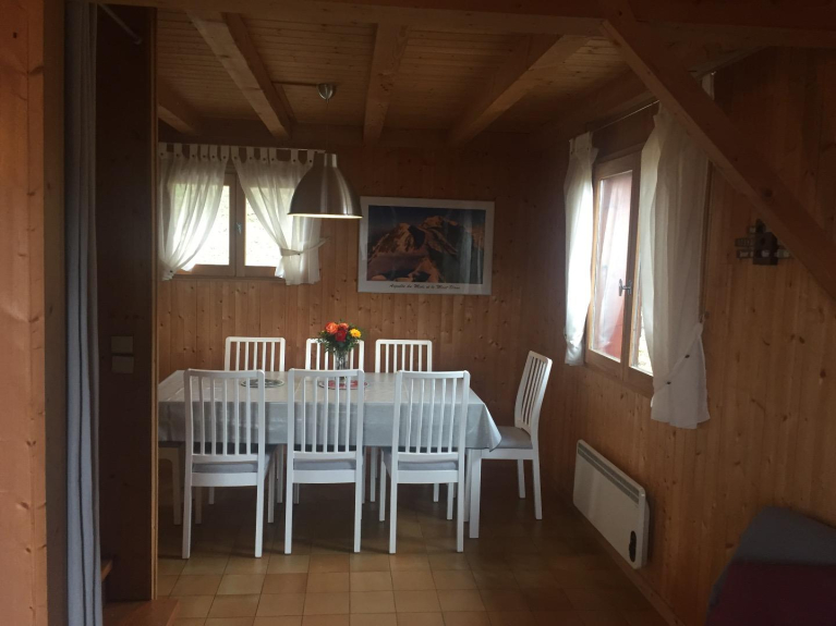 Chalet muy luminoso, sobre 900 m2 de terreno, con aparcamiento privado, garaje para un coche, terraza y balcón orientados al sur. En la planta baja : * cocina con horno, microondas, lavavajillas, * una gran sala de estar, comedor con TV y un rincón de relax, * un aseo separado.* un baño con ducha. En la primera planta: * Dos dormitorios con cama de matrimonio* Un dormitorio con cama de matrimonio* Un aseo y un lavabo. Lavadora en el sótano.