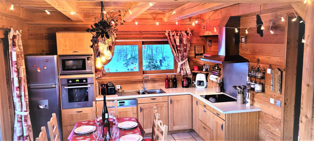 Cocina abierta a SAM equipada como en casa, lavavajillas, horno, microondas, placa de inducción, cafetera Nespresso y de filtro, hervidor, máquina de fondue y raclette, crepera, robot de cocina, batidora, olla a presión.