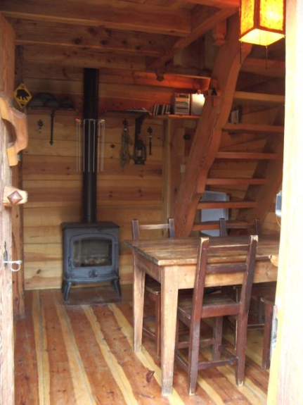 Planta baja: 1 ducha, 1 cocina americana (nevera, cocina de gas, horno), 1 aseo, estufa de leña.