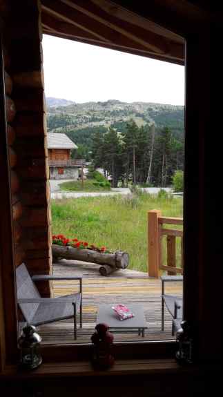 A 1475 m de altitud, esta cabaña de madera con terraza orientada al sur tiene vistas a las laderas y a los picos de Dévoluy. Complejo acuático a 400 m, O'dycéa (spa, sauna...)