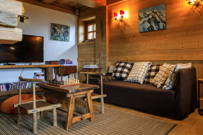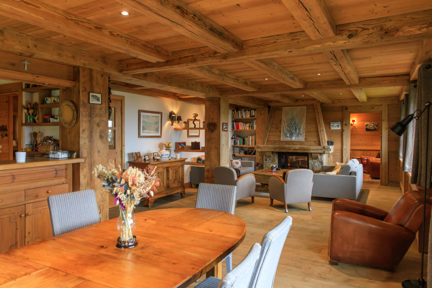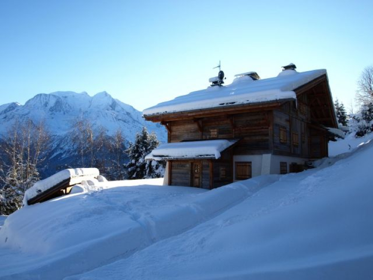 Gran chalet individual, muy confortable, completamente renovado en una parcela de 900m2. Gran salón doble, sala de TV, sauna. Magnífica vista del macizo del Mont Blanc.
