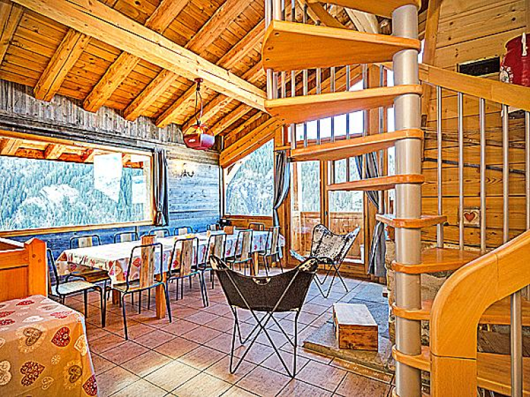 El Chalet Balcon du Paradis es un chalet de lujo con sauna y jacuzzi al aire libre, chimenea y conexión Wi-Fi gratuita. Está hecho de madera y piedra, los materiales característicos de la región. Está situado en la parte alta del pueblo; el remonte más cercano es el de Télévillage Lonzagne, a unos 350 m a pie, que da acceso a toda la zona de esquí de Les Arcs-Paradiski. Es posible volver esquiando fuera de pista, dependiendo de las condiciones de la nieve (no hay pistas preparadas ni aseguradas; bajo su propia responsabilidad). Después de esquiar, dé un paseo por las estrechas calles del pintoresco pueblo de Peisey-Nancroix (distancia ~600 m) con sus restaurantes, bar, tienda de comestibles, panadería y carnicería. Disfrute de unas magníficas vacaciones de esquí en Les Arcs, pero también del encanto de un pueblo tradicional de montaña. Escaleras de acceso al chalet.