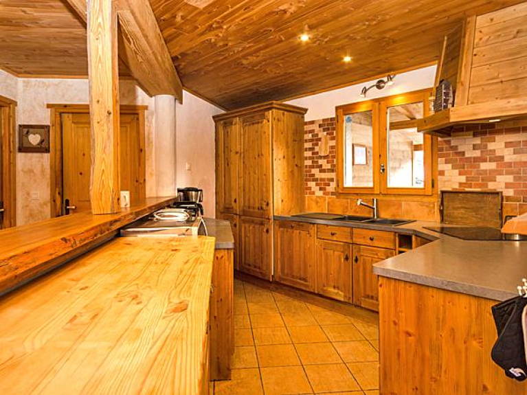 cocina abierta al salón (lavavajillas + frigorífico con congelador + placa eléctrica + horno + microondas + cafetera + máquina de raclette + set de fondue); chimenea; TV vía satélite; lector de DVD; equipo de música con lector de CD; wifi gratuito; lavadora; secadora; calefacción por suelo radiante en parte; garaje; terraza; balcón; sala de esquí.