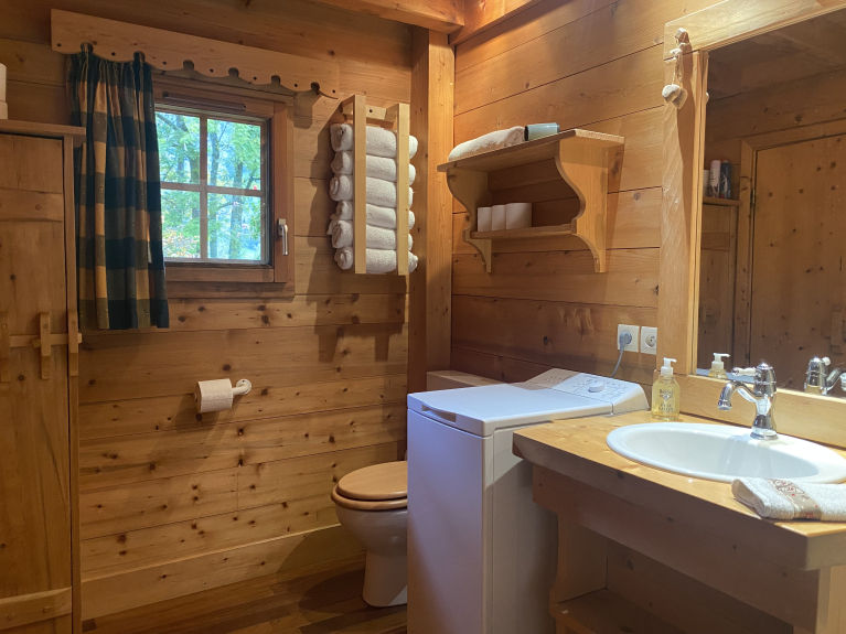 Le Bothy está a 100 metros de los otros chalets. El baño está en el cuarto de baño y hay aparcamiento fuera de la carretera, pero un gran jardín con columpios, casa del árbol y un pequeño chalet de los niños con un montón de juguetes.
