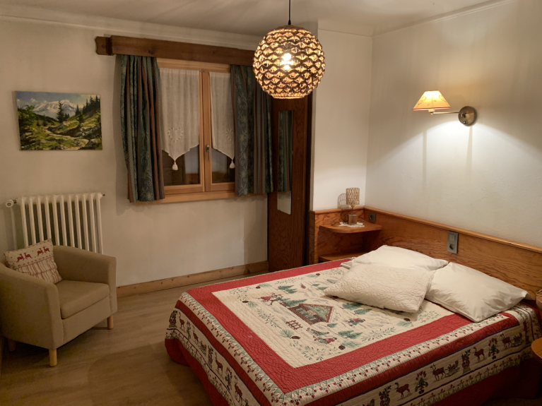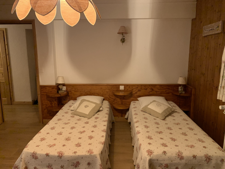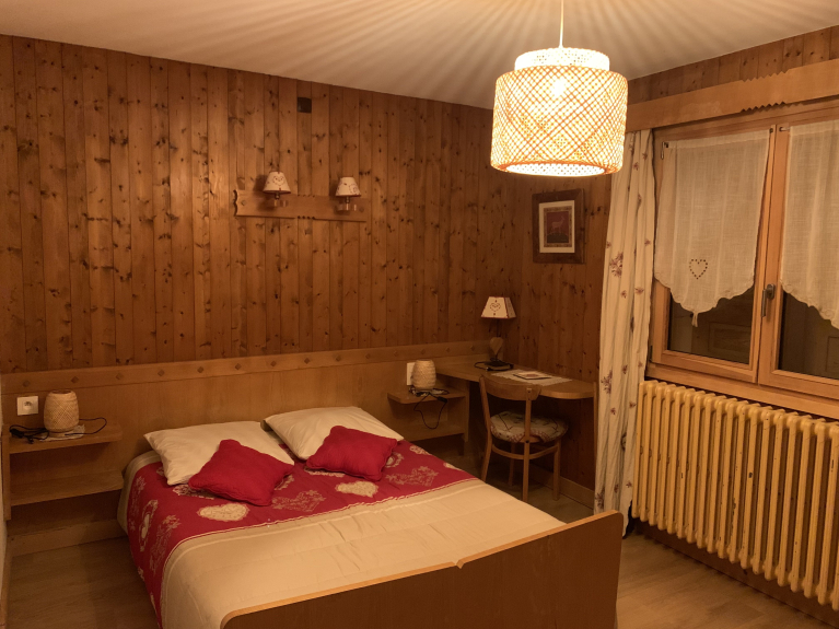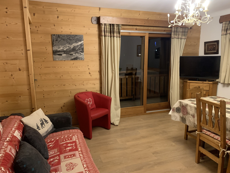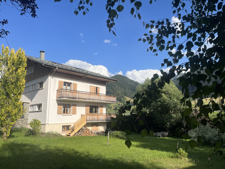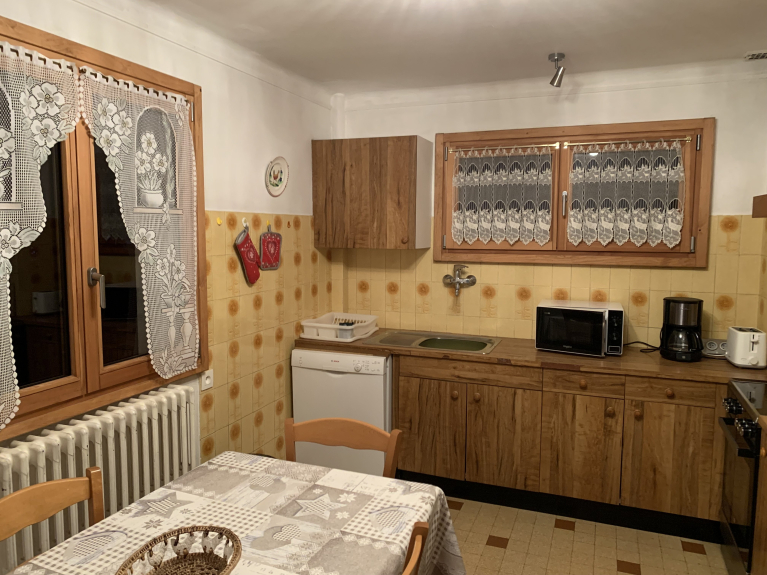 Apt. Appartamento di 3 stanze in chalet, situato nel centro della località in una zona tranquilla. A 5mn dalle piste da sci e da tutti i negozi. Parcheggio esterno, grande giardino. Possibilità di raggiungere le piste con gli sci quando le condizioni della neve lo permettono. Balcone esposto a sud-ovest con vista sulle piste da sci e sulle montagne.