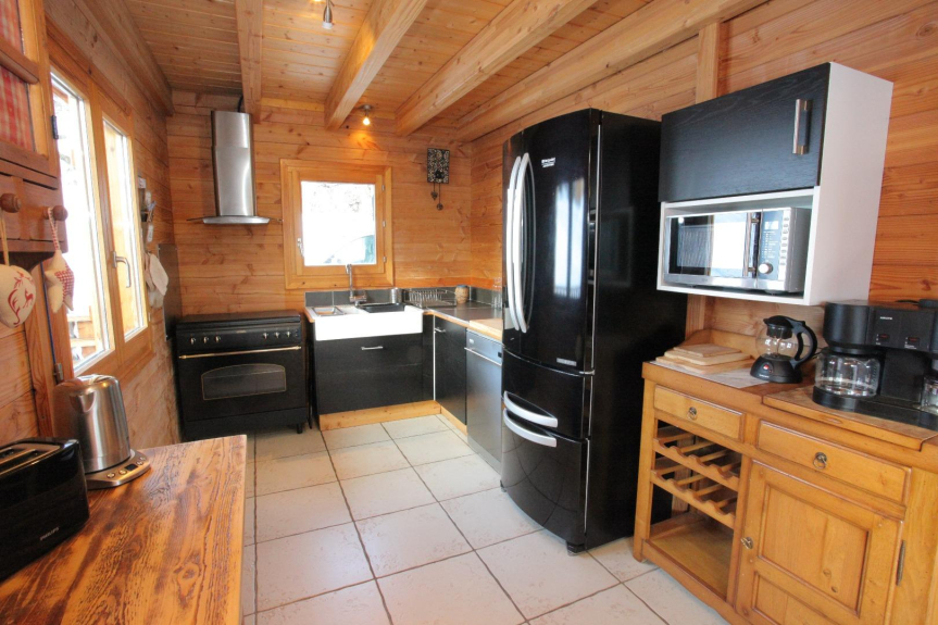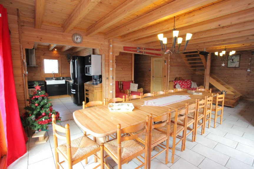 Lo chalet comprende un ampio soggiorno che si apre su una grande terrazza esposta a sud (50 m²), una cucina completamente attrezzata, 5 camere da letto, tre bagni e tre toilette.