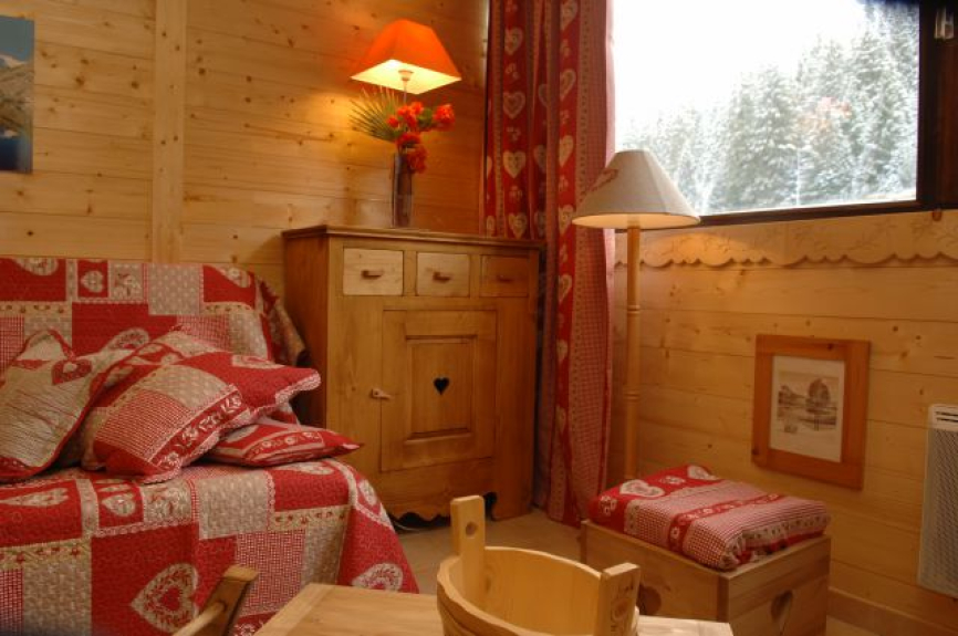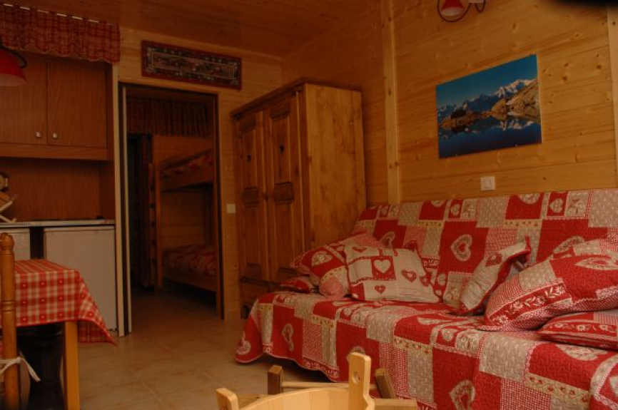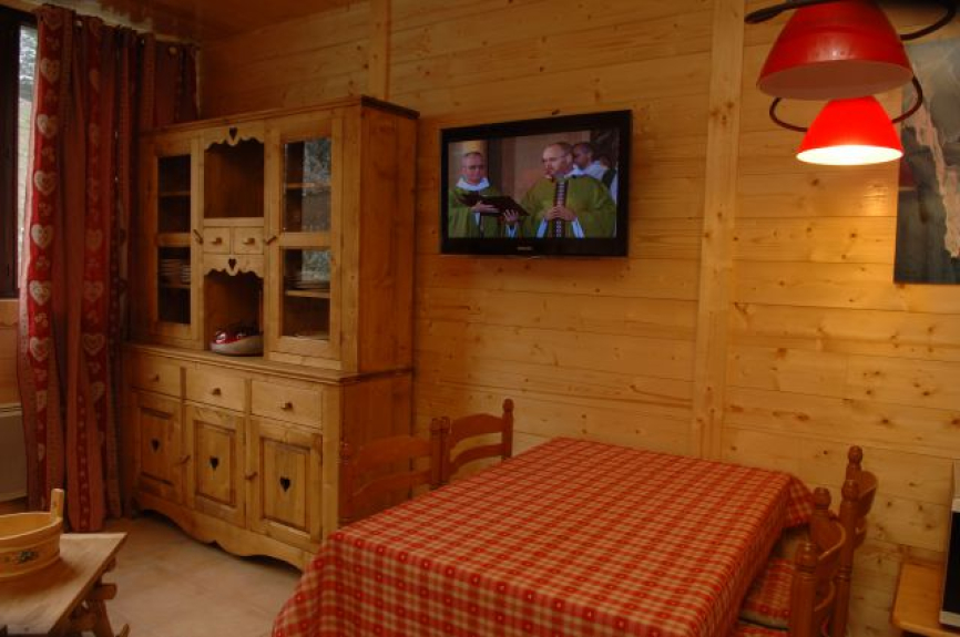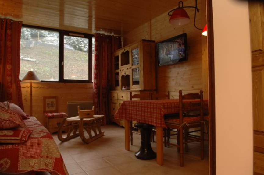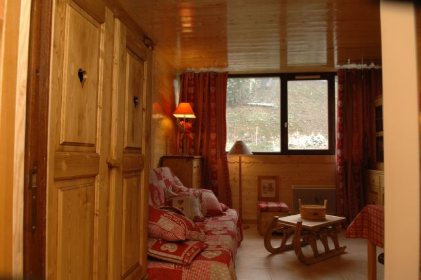 Studio di montagna 27 M2 completamente rinnovato in stile chalet di lusso, con una stanza principale con rivestimento in legno, angolo montagna e bagno. Classificazione 2 ** 4 persone ottobre 2012.