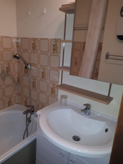- 1 bagno con vasca, asciugamano e asciugacapelli.