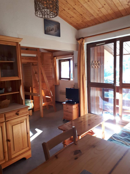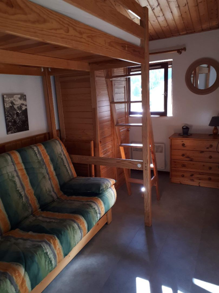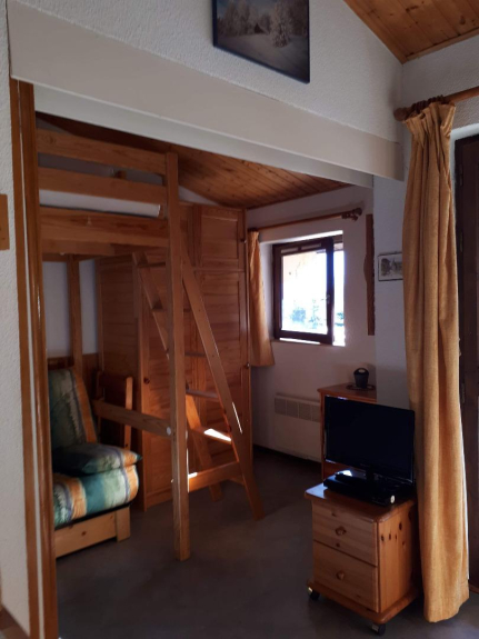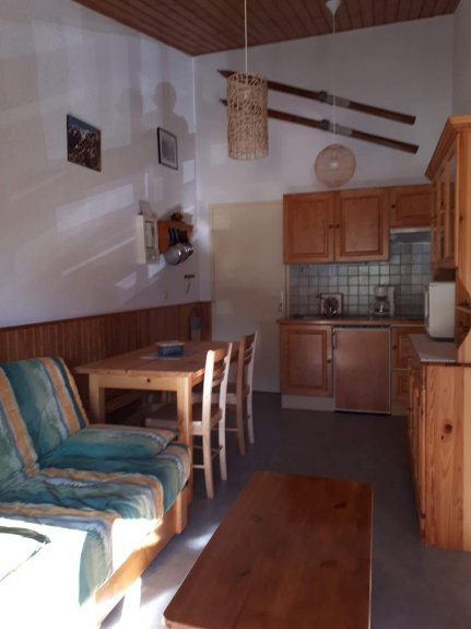 - 1 stanza principale con un angolo cottura dotato di forno, piano cottura elettrico, microonde, frigorifero, macchina da caffè Senseo e filtro, tostapane, set da raclette, 1 zona pranzo e un divano BZ per 2 persone dotato di TV.