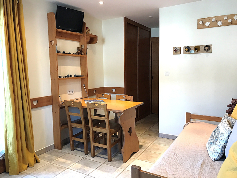 - un soggiorno con un divano estraibile con due materassi di 80 cm di larghezza (1 o 2 persone) e un televisore a schermo piatto