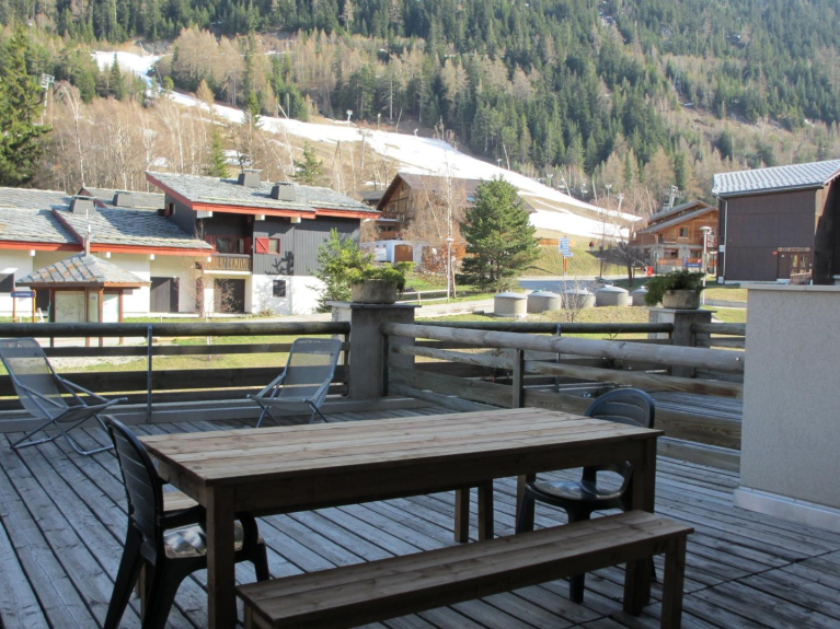 Posizione molto soleggiata, con una bella terrazza di 42 m2, vista sulle piste da sci, a meno di 100 metri dal centro e dalle piste.