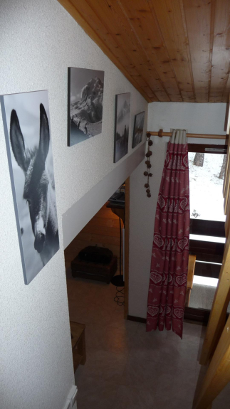 Interno: Appartamento con mezzanino, ben arredato e decorato in montagna, completamente attrezzato. Riscaldamento elettrico efficiente. Sul mezzanino 3 letti composti da un letto 140x200 e un letto 80x200