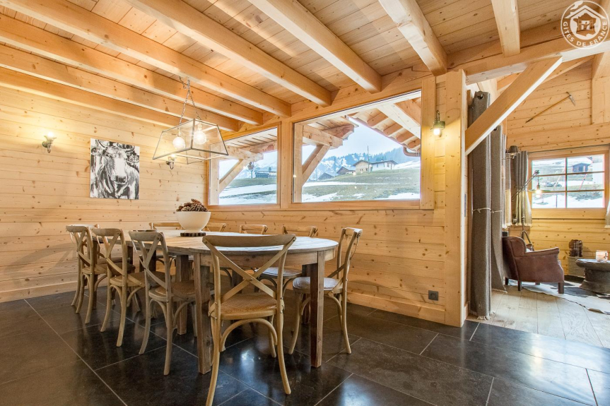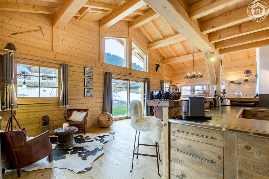 Chalet (12p), bioclimatico, che combina la tradizione di un tempo (struttura palo/trave, pavimenti in parquet, pietra naturale, intonaco d'epoca, copertura in tavaillon, ecc.) e uno spirito contemporaneo (grandi spazi abitativi inondati di luce). Servizi, attrezzature e decorazione di altissima qualità.