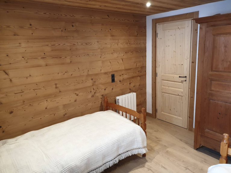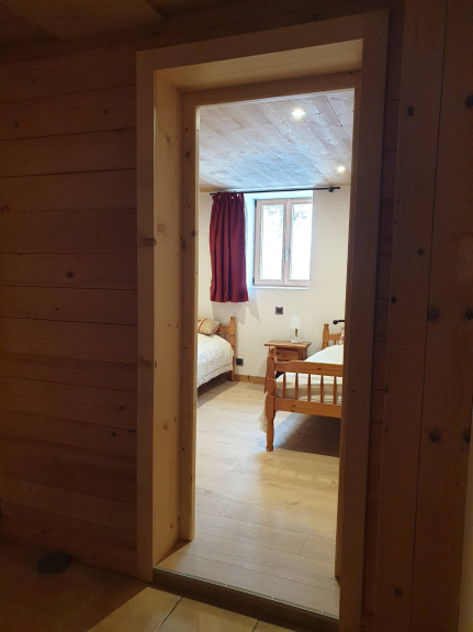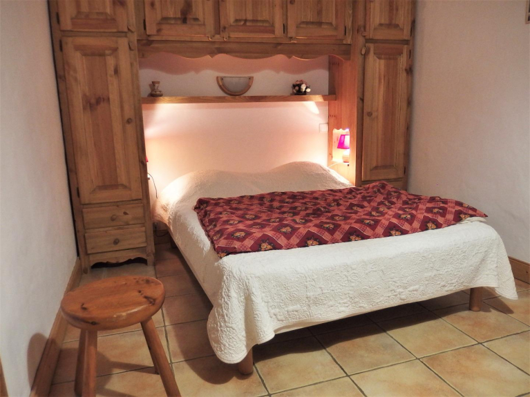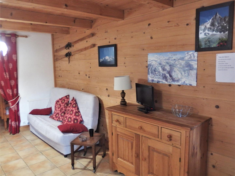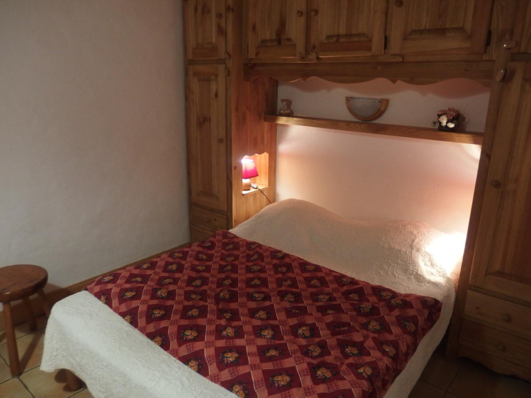 Studio 37 m2 con angolo cottura, zona notte con un letto matrimoniale, zona montagna con due letti a castello e un divano letto.