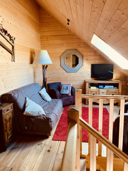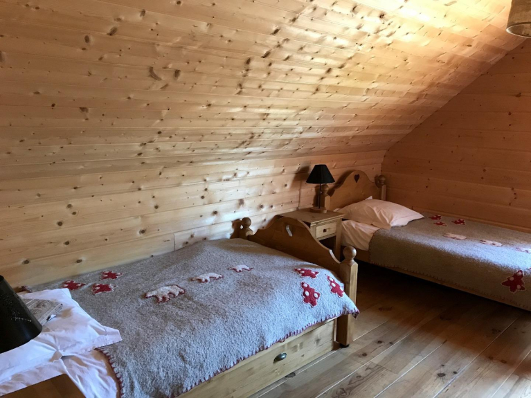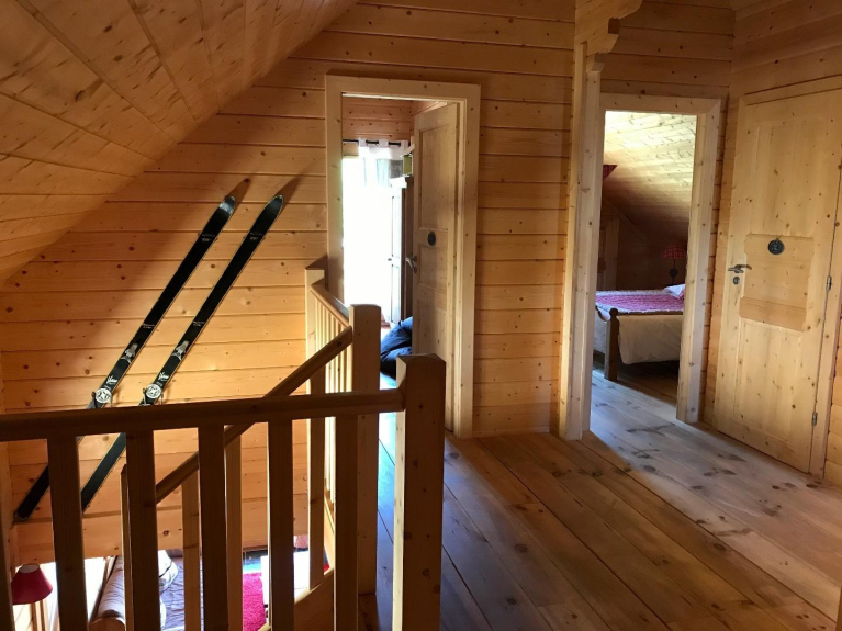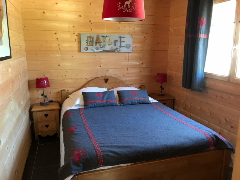 Un bellissimo chalet nu, a meno di 800 metri dalle piste e vicino alla fermata del bus navetta che vi porterà al centro del villaggio o alla partenza degli impianti di risalita. Lo chalet dispone di 4 camere da letto, una al piano terra con bagno con doccia e le altre tre al primo piano, due delle quali con vista sulle piste e un balcone. C'è un mezzanino/salotto con TV, BZ, console per i giochi e un bagno con una grande vasca ad angolo.