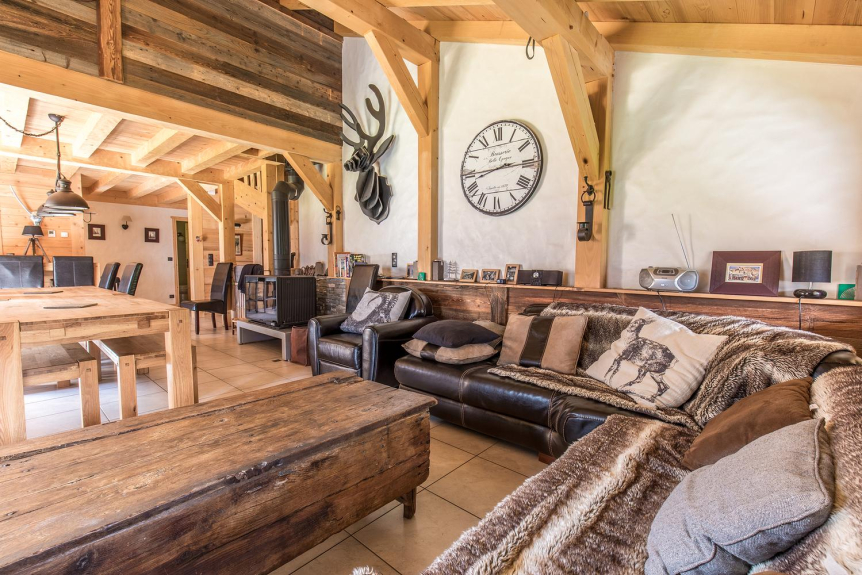 Questo chalet è stato arredato con gusto nello spirito di una casa di famiglia. Combina i comfort moderni del riscaldamento a pavimento e una cucina completamente attrezzata con il calore del fuoco a legna nella stufa e i mobili antichi.