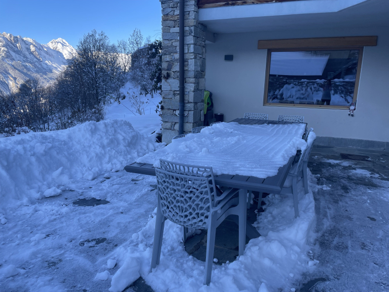 Molto spazioso al piano terra di un tipico chalet savoiardo per 12 persone; e molto confortevole con una sauna e una bella terrazza con una vista mozzafiato sulle montagne.