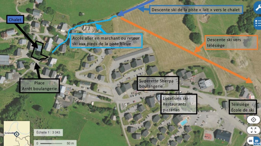 La stazione sciistica è a La Chal (nuova zona con ristoranti, negozi, 5 noleggi di sci, bar, tabaccheria, cinema, asilo nido e scuola materna) da dove partono le seggiovie per Corbier (300m dallo chalet) (possibilità di accesso per sciare e tornare allo chalet direttamente dalle piste per i meno esperti).