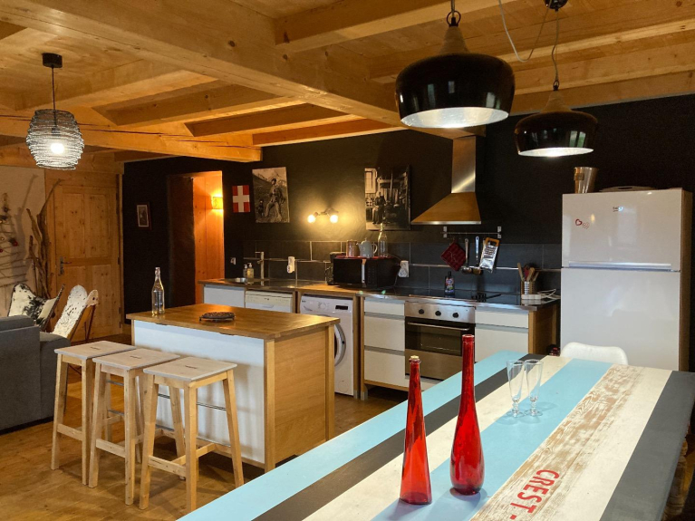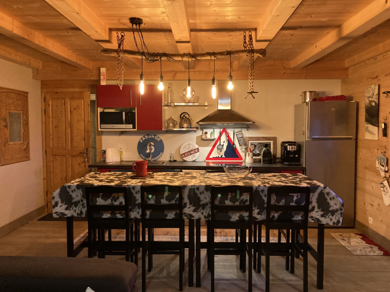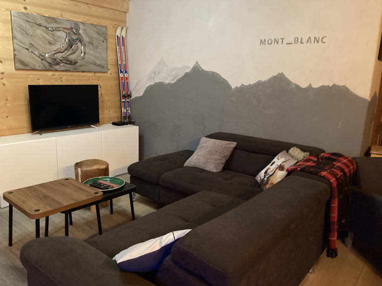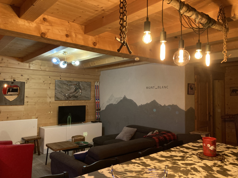 Offriamo 2 bellissimi appartamenti al piano terra di una vecchia fattoria alpina ristrutturata, il Monte Bianco e il Monte Charvin, offrendo fascino, volume e comfort. 80m2 ciascuno, fino a 16/17 persone, soggiorno con cucina attrezzata, 2/4 camere da letto, bagno con doccia e WC separato
