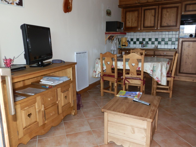 Due camere da letto, 7 posti letto, bagno, WC separato, cucina attrezzata, soggiorno che si apre su una terrazza esposta a sud con vista sulla valle del Beaufortain.