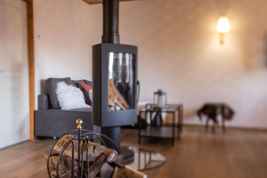 Soggiorno/sala da pranzo con stufa a legna (legna fornita)