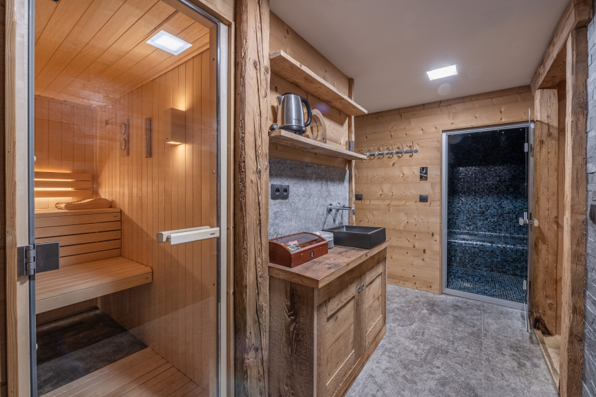 Lo chalet Cocoon è una nuova costruzione in legno antico tradizionale. Nessuna spesa è stata risparmiata per fornire la casa con materiali e finiture di alta qualità. Pavimenti in parquet e porte antiche con lavori in ferro battuto sono combinati con sofisticate caratteristiche moderne come una cucina in cemento lucidato e un'illuminazione di design. Lo chalet è stato progettato da un antiquario che ha incorporato elementi antichi come porte, telai di finestre e travi provenienti da Francia, Svizzera, Austria e Spagna. Questo è completato da un'illuminazione indiretta con faretti LED incassati e da mobili moderni (acciaio inossidabile e legno antico) e decorazioni di montagna di alta qualità (pelli di mucca, ecc.). Lo chalet ha il riscaldamento a pavimento e un isolamento eccezionale (classe energetica B!). Tutto questo crea un'atmosfera molto accogliente e bozzolo. Da qui il nome dello chalet....